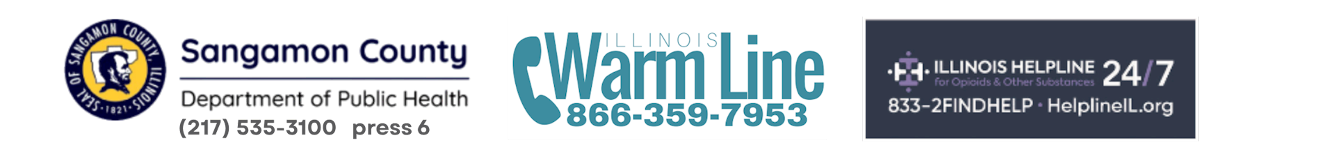 We are partnered with the Sangamon County Department of Public Health and this program is funded in part by the Illinois Department of Human Services Division of Substance Use Prevention and Recovery and the Substance Abuse and Mental Health Services Administration.